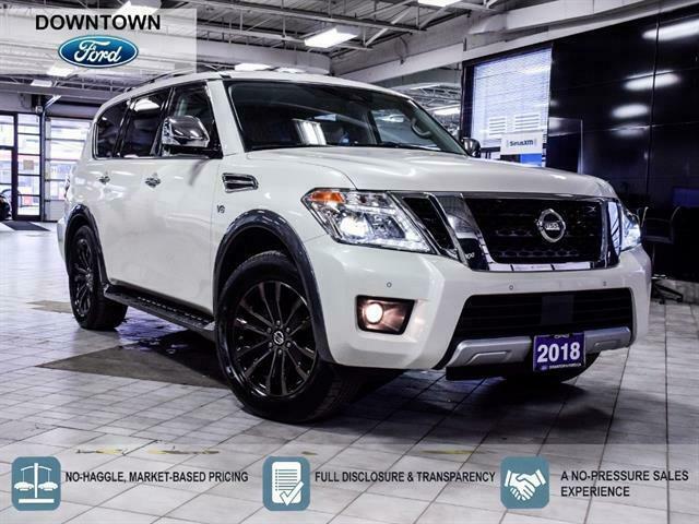 * SUMMER AWD SALE * CALL FOR DETAILS * ONE OWNER * CLEAN CARFAX * LOW KMS * $0 DOWN FINANCE OAC * Featuring NAVIGATION, POWER LIFTGATE, HEATED FRONT & REAR SEATS, ADAPTIVE CRUISE CONTROL and much more... This FULLY LOADED Armada is a full size SUV ready to tackle anything you throw at it! TAKE ON ADVENTURE. Turn heads with a refined, yet unmistakable, exterior design. Attention to detail and exceptional craftsmanship greet you the moment you step inside! The spacious cabin offers seating for up to 8 PASSENGERS in comfort and luxury. Featuring the latest technology and with drive modes for mud, sand, gravel, grass, the Armada offers unparalleled capability and practicality for any adventure! Whether it's running daily errands or cross country road trips the Armada has you covered. TOW CAPACITY UP TO 8,500 LBS DVD ENTERTAINMENT SYSTEM SUNROOF 360 CAMERA COLLISION WARNING LEATHER NAVIGATION REMOTE START HEATED FRONT SEATS HEATED REAR SEATS MEMORY SEATS ADAPTIVE CRUISE CONTROL REAR VIEW MIRROR W/CAMERA HEATED STEERING WHEEL BLIND SPOT MONITORS RUNNING BOARDS POWER SEATS W/LUMBAR TRI-ZONE AUTOMATIC CLIMATE CONTROL 20'' WHEELS UNIVERSAL GARAGE DOOR OPENER *Our Market Value pricing takes the worry out of buying a pre-owned vehicle: -No Haggle, market-based pricing.* -A no pressure sales experience.* -Extended warranties available.* -Full Disclosure & Transparency.* -Please contact us at 1-877-806-4850 for full details.* AVAILABLE CANADA WIDE SHIPPING ON ALL OUR USED VEHICLES MAKES PURCHASING HASSLE-FREE, NO MATTER YOUR LOCATION!! *Special finance rate available O.A.C. *We can customize a special monthly or bi-weekly payment that suits your needs! *No credit? Bad credit? New to the country? We've got you covered! Let us help you find a vehicle today! Let our experienced and caring finance team assist you towards your next vehicle. We specialize in difficult approvals and proud to have helped many clients rebuild their credit! ** FREE TRADE EVALUATION: On the spot appraisal! Bring in your vehicle, our Downtown Auto Group team wants your trade! We'll pay Top dollar for your car! ** *The team at Downtown Ford would like to thank you for the opportunity to earn your business. *We are conveniently located in the Heart of the City in a trendy neighbourhood in between The Distillery District and St Lawrence Market at 354 Richmond St East! Buy with confidence! Parking Directions: Free parking available! We also provide complimentary valet parking! Turn right from Richmond St. E into our indoor Sales & Service Drive through for complimentary valet service! *Please confirm with seller for accuracy of information provided. Distance driven is recorded at the time of listing.