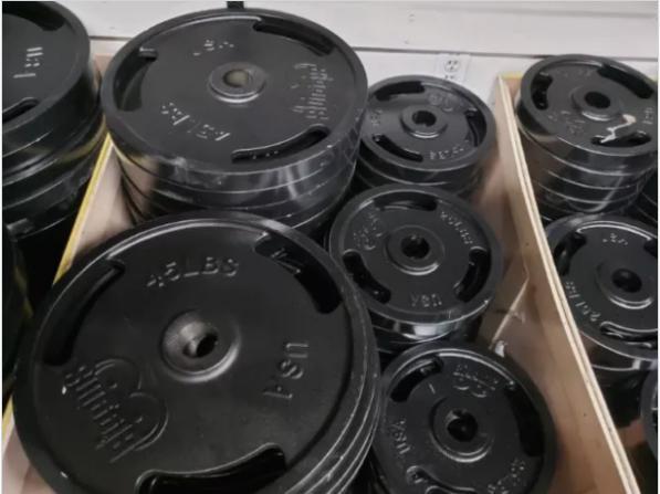 New Olympic Plates from Biggins Iron $1.99/lb. ($2.49/lb regular). Made in USA. (While supplies last.) 5, 10, 25, and 45 lb plates in stock.