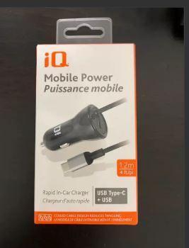 iQ USB Type-C CLA Car Charger with Built In Cable and Extra USB Charging Port